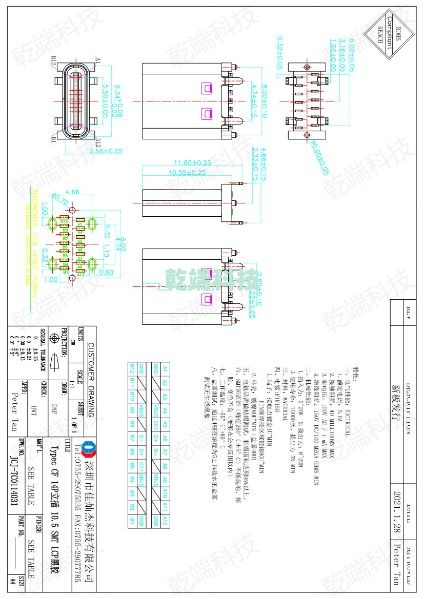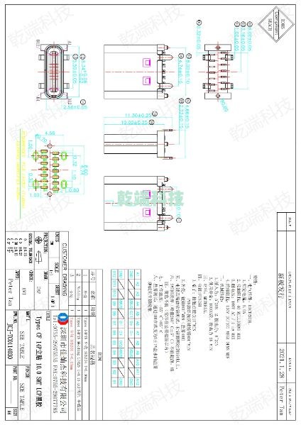TYPE-C 14PIN 立貼 10.0&10.5 SMT LCP黑膠