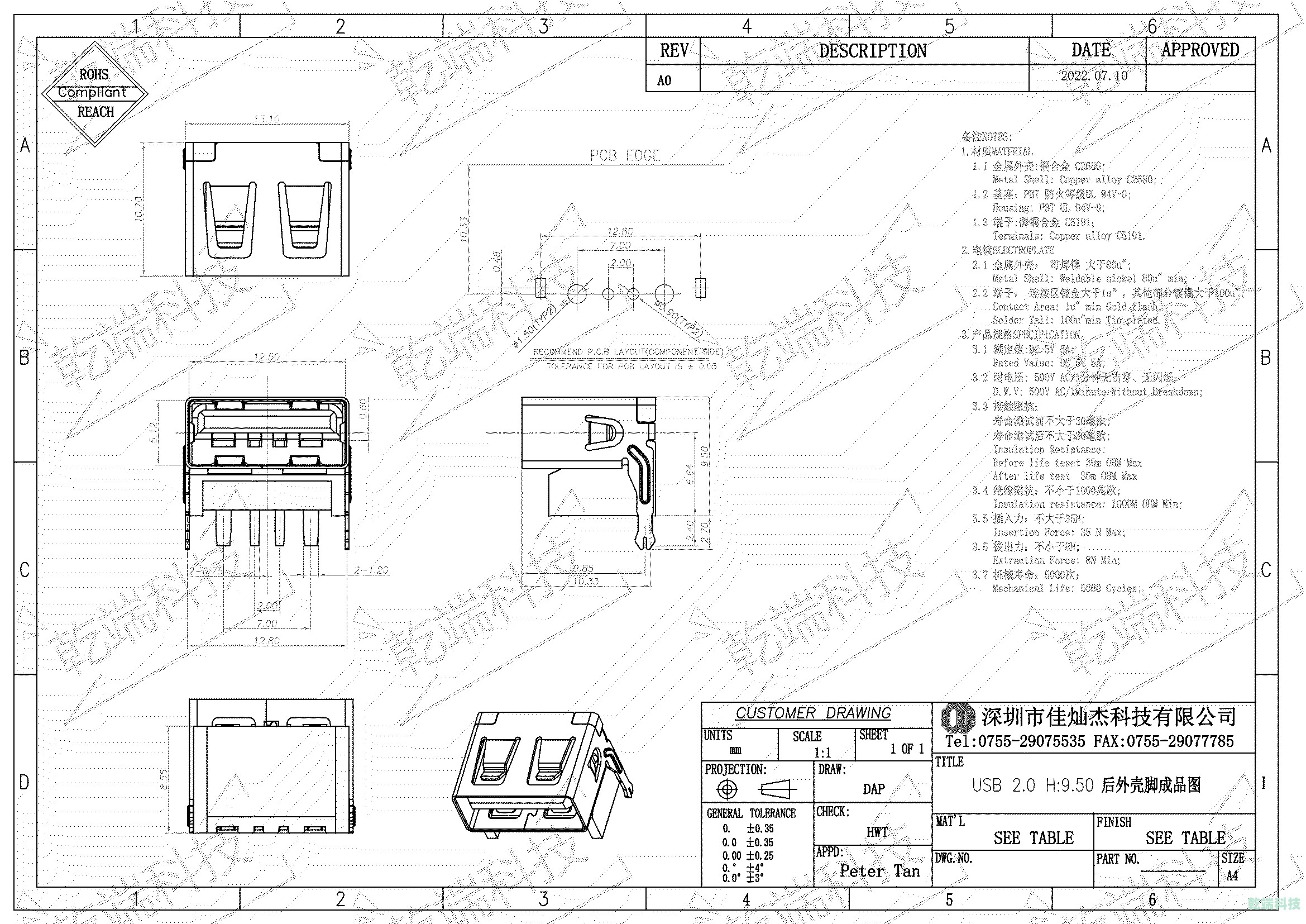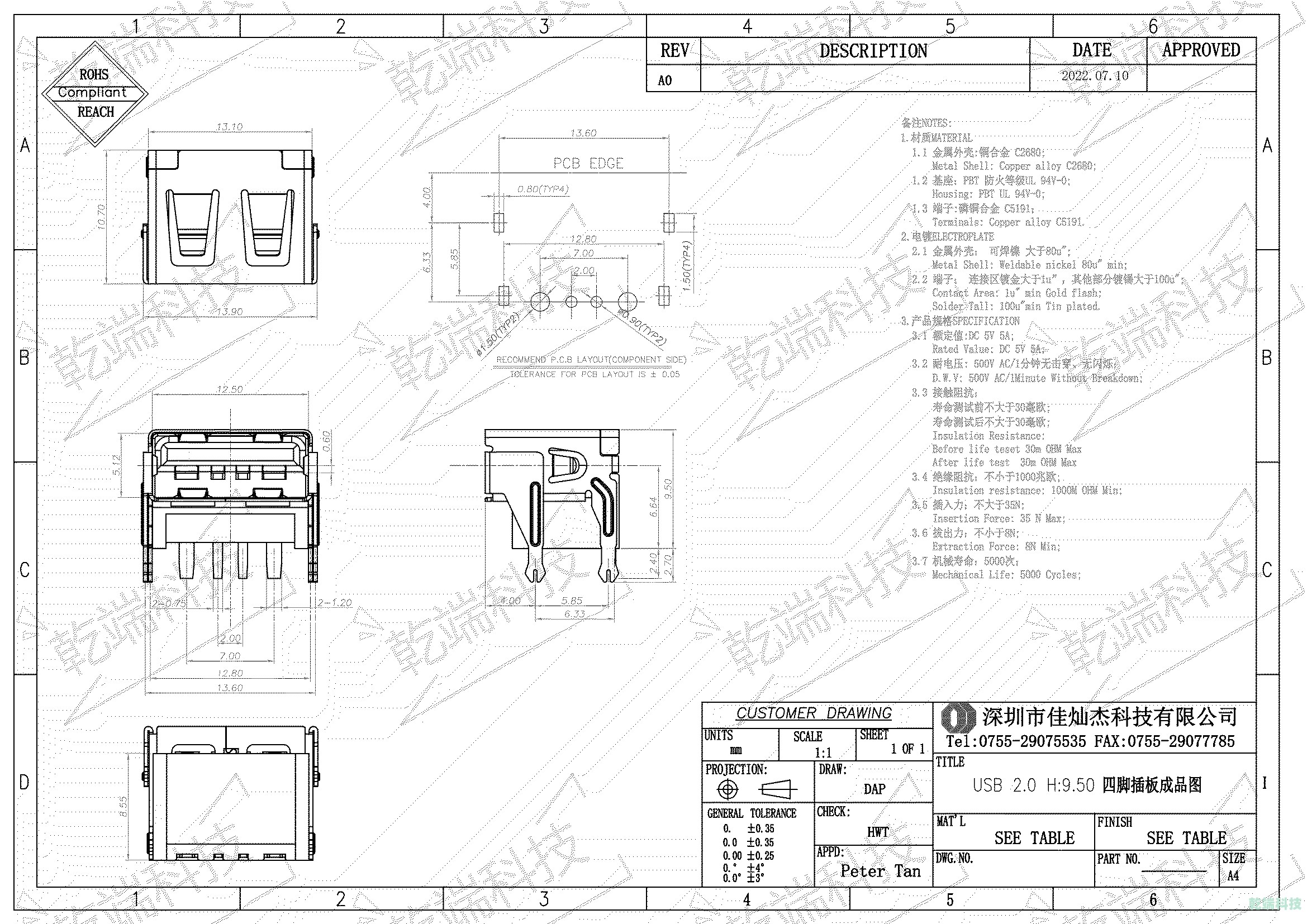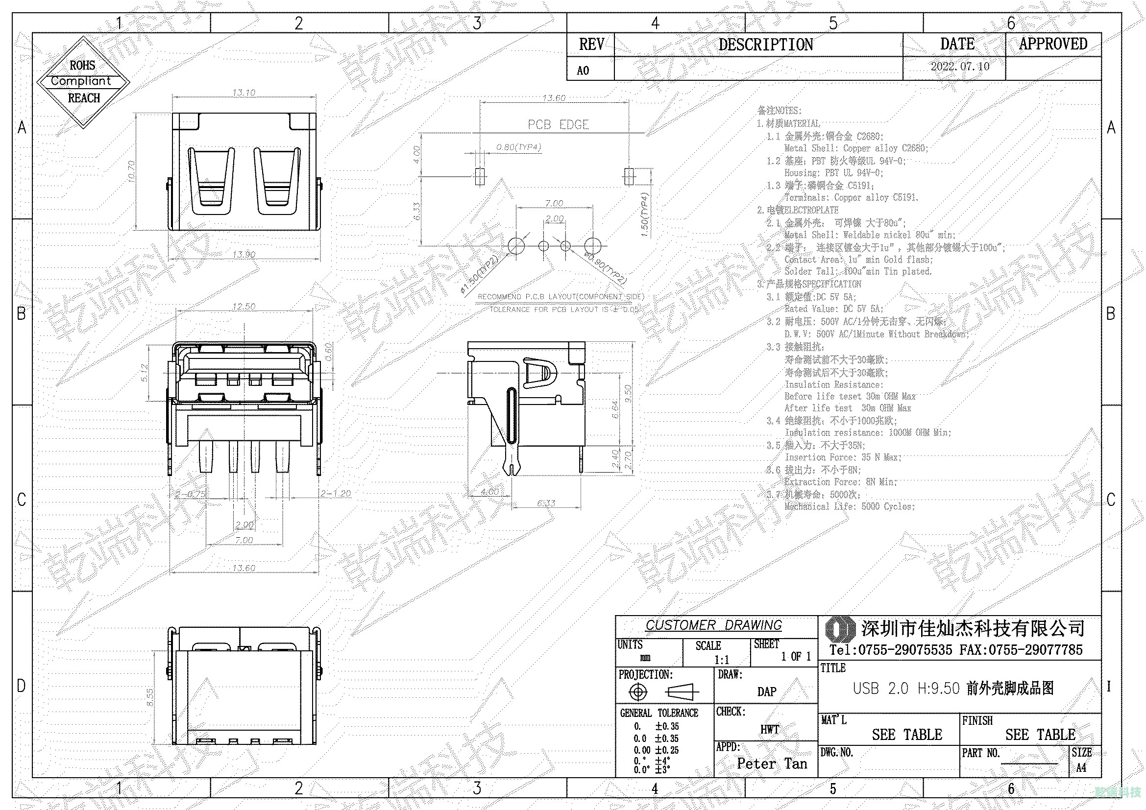 端子:C5191&H62; 電鍍規(guī)格:常規(guī)1U,其他規(guī)格可定制。