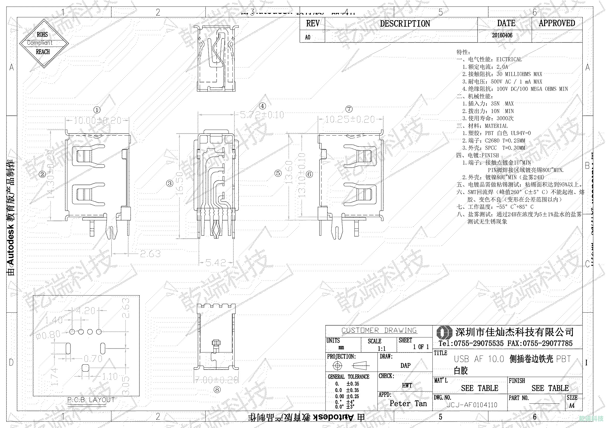 端子:1.C5191&H62;2.常規(guī)電鍍0.8U,其他電鍍規(guī)格可定制;3.針長(zhǎng)常規(guī)2.0mm,其他針長(zhǎng)可定制。