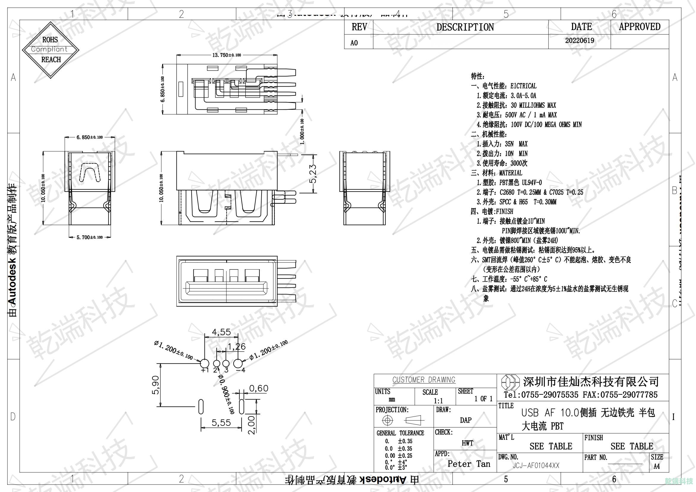USB AF 10.0側(cè)插半包 大電流
